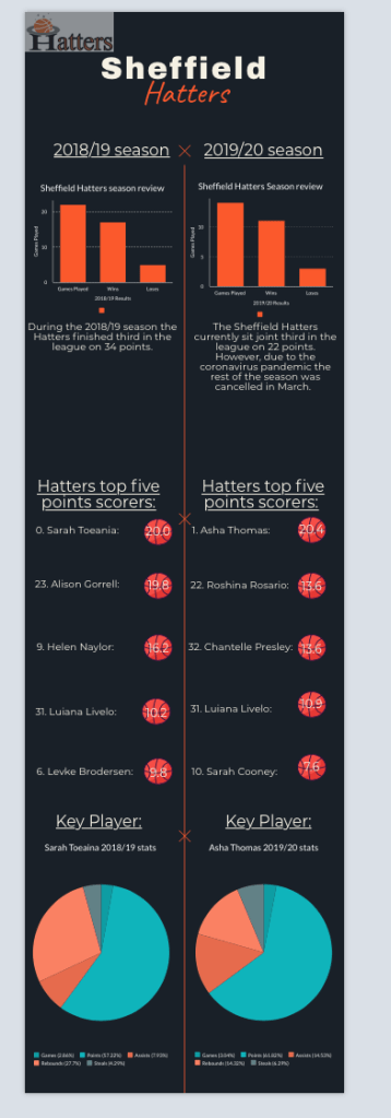 The information for this infographic was from the Women’s British Basketball League website and the Sheffield Hatters about us page on the clubs official website.